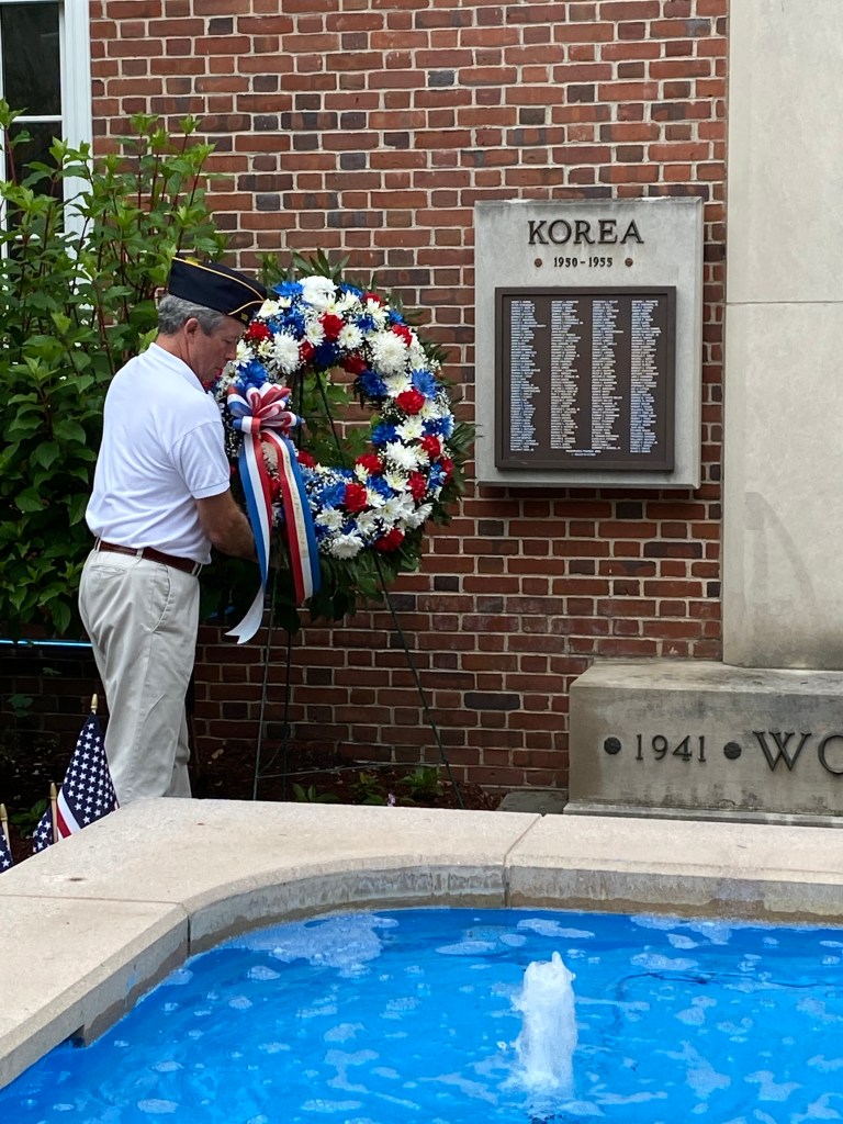 The wreath laying ceremony consisted of the playing of the National Anthem, a benediction prayer and Taps.