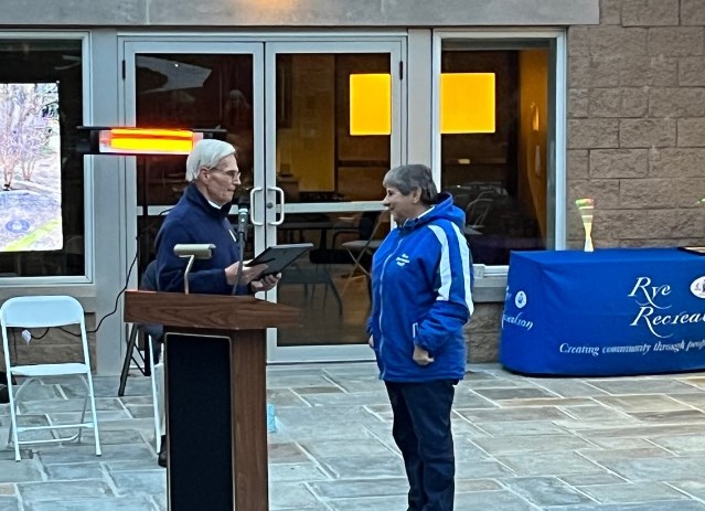 Commander Fred de Barros presented a Certificate of Appreciation to retiring Director of Rye Recreation, Sally Rogol yesterday at her retirement ceremony. He says, “Over the years, Sally has been a strong supporter of the Post – we even awarded her the Americanism Award a few years ago. We will miss her; and wish her the best in retirement.”