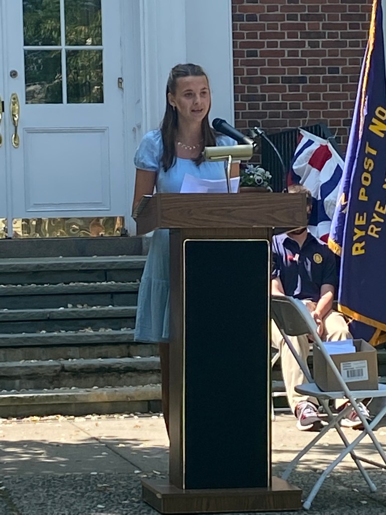 The John M. Kingery Memorial Day Essay Contest Award and $1000 was presented to Karenna Chader of Rye High School who submitted the winning essay on “What Memorial Day Means to Me.”