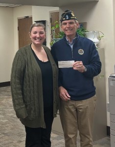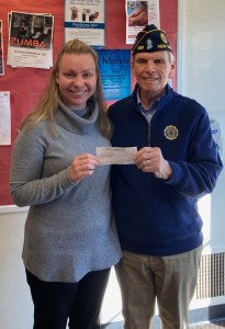 This VA check presentation follows our recent $2000 donation to Rye Recreation for uniforms for the upcoming basketball season. In the attached photo, Commander de Barros is seen presenting the check to Erin Mantz, Superintendent of Rye Recreation.