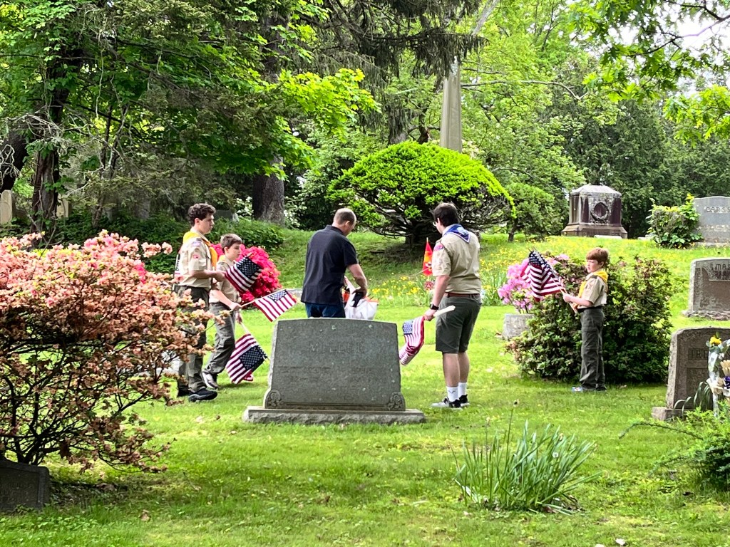 On May 18, 2024 Commander Fred DeBarros and Legionnaire Glen Carpinello led a group of Legionnaires and Rye Boy Scouts to decorate graves of deceased veterans at Greenwood Union Cemetery in Rye. They decorated over 150 graves of veterans buried there. Thank you to all. Check out photos below.