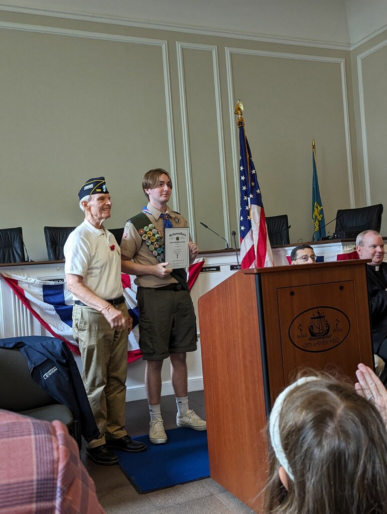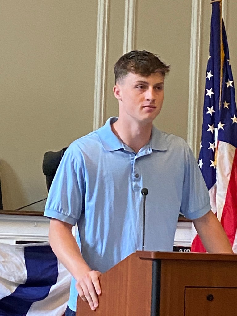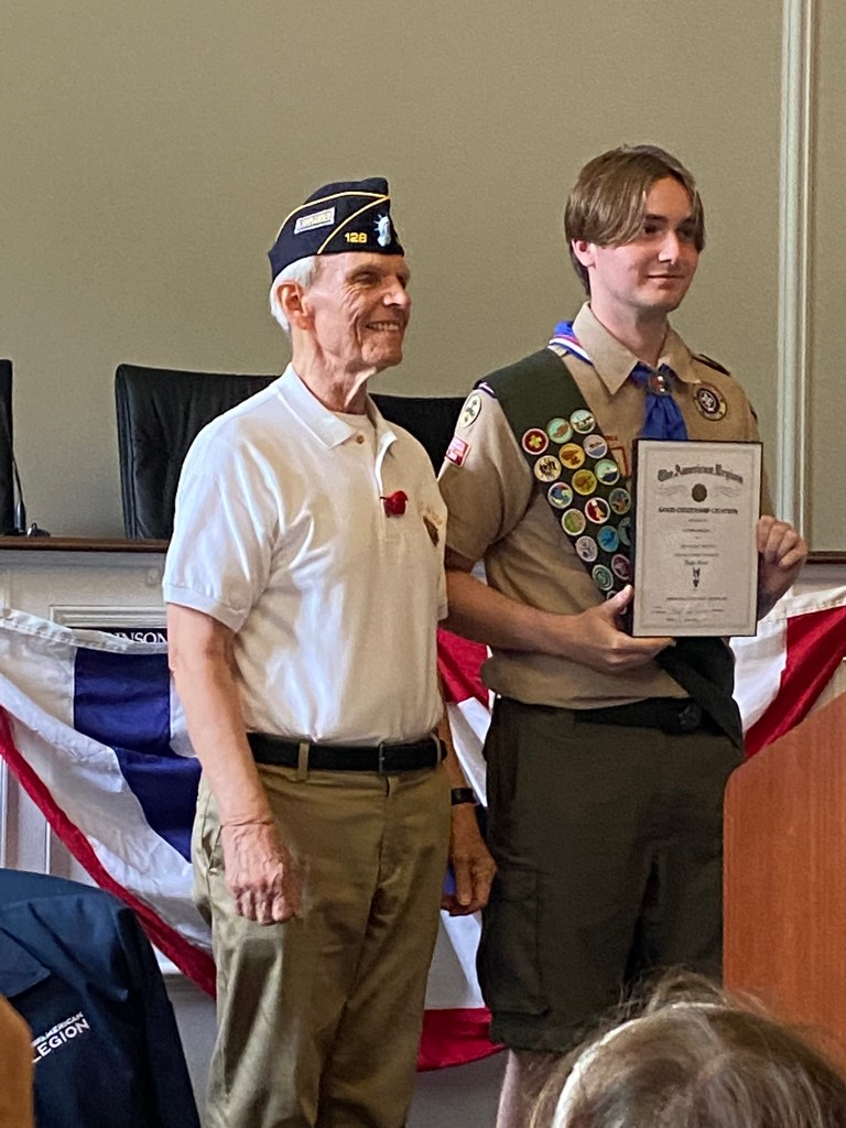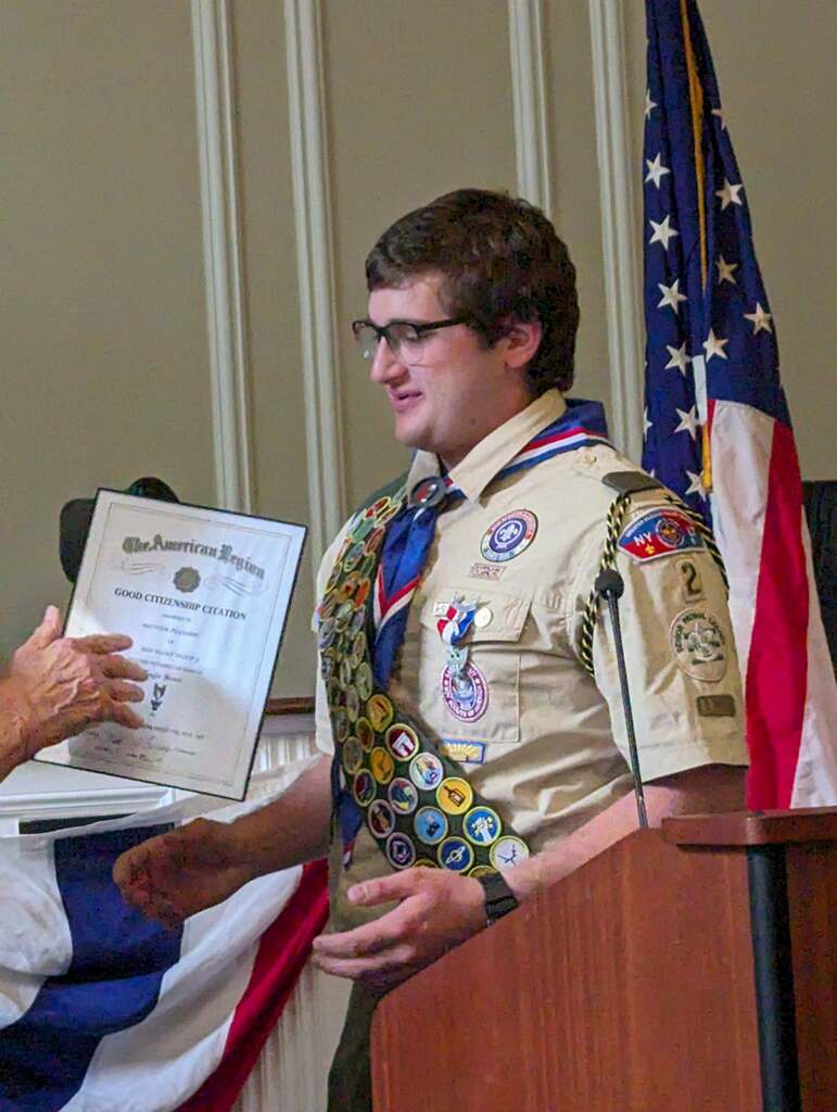 Commander de Barros recognized Rye Eagle Scouts who received the American Legion Good Citizen Citation: Ferdinand Coughlin, Matthew Pellegrini and Logan Jancski.
