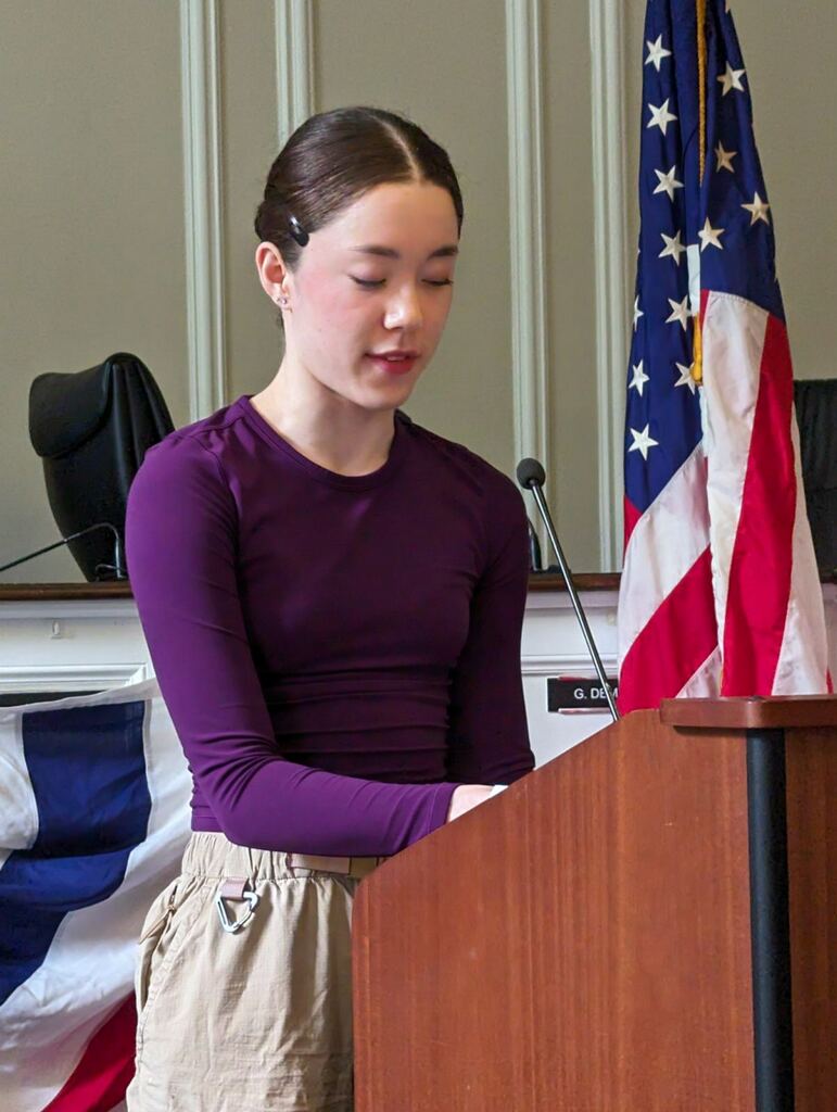 The John M. Kingery Memorial Day Essay Contest Award was presented to Madeline Kilroy of Rye High School who read her winning essay on “What Memorial Day Means to Me.” She wrote how the Korean War had impacted her ancestors – both Korean and American.