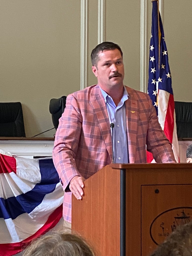 This year’s principal speaker was Rye resident Patrick Murphy. He is a proud US Navy veteran whose commitment to service extends from his military career to his community in Rye, NY. Raised in South Florida to Irish Immigrant parents, with a sense of duty and honor, Patrick served his country with distinction, rising to the rank of Lieutenant Commander, flying Search and Rescue missions throughout the 7th Fleet and Iraq in the MH-60S Knighthawk Helicopter.