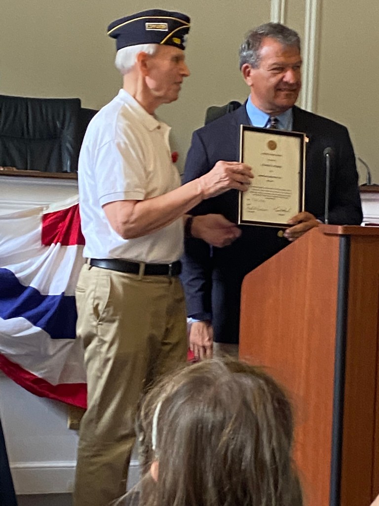 Commander de Barros awarded Westchester County executive George Latimer the American Legion Americanism award for his service and alignment to American Legion values of veterans’ support and community.