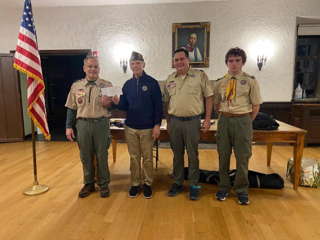 Rye American Legion Post Commander Fred de Barros recently presented a check for $1,000 to Rye Boy Scouts Troop 2. Kelli Jancksi of the Rye Troop 2 Committee said, ” Thank you again so much for attending the troop meeting tonight for your generous donation and for participating in the ceremony at the fire pit. We value our relationship with you and with the Legion post.
