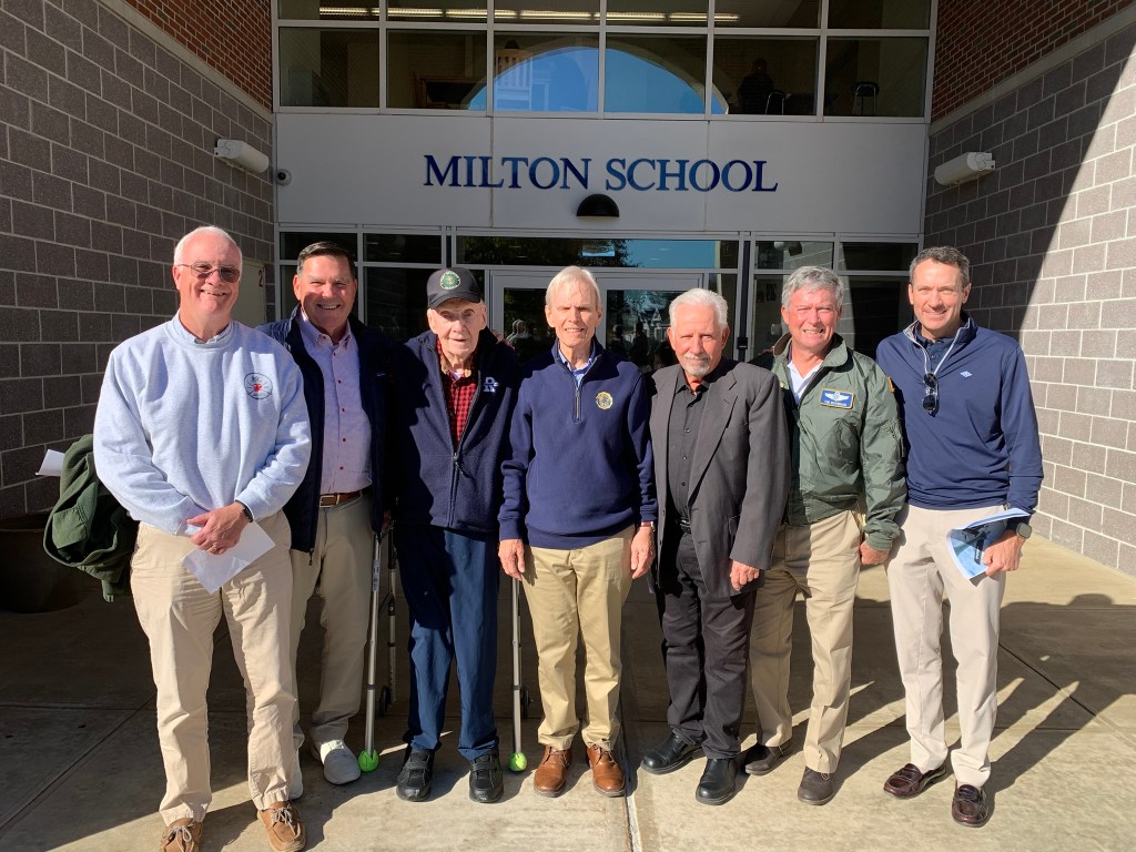 This morning seven veterans attended breakfast with the Milton School 5th graders. We sang the national anthem and recited the pledge of allegiance. Then each veteran sat at a table with group of students and had conversation with them discussing their military experience. The students were very inquisitive. Coffee, cider, and donuts were served. It was a very positive morning.