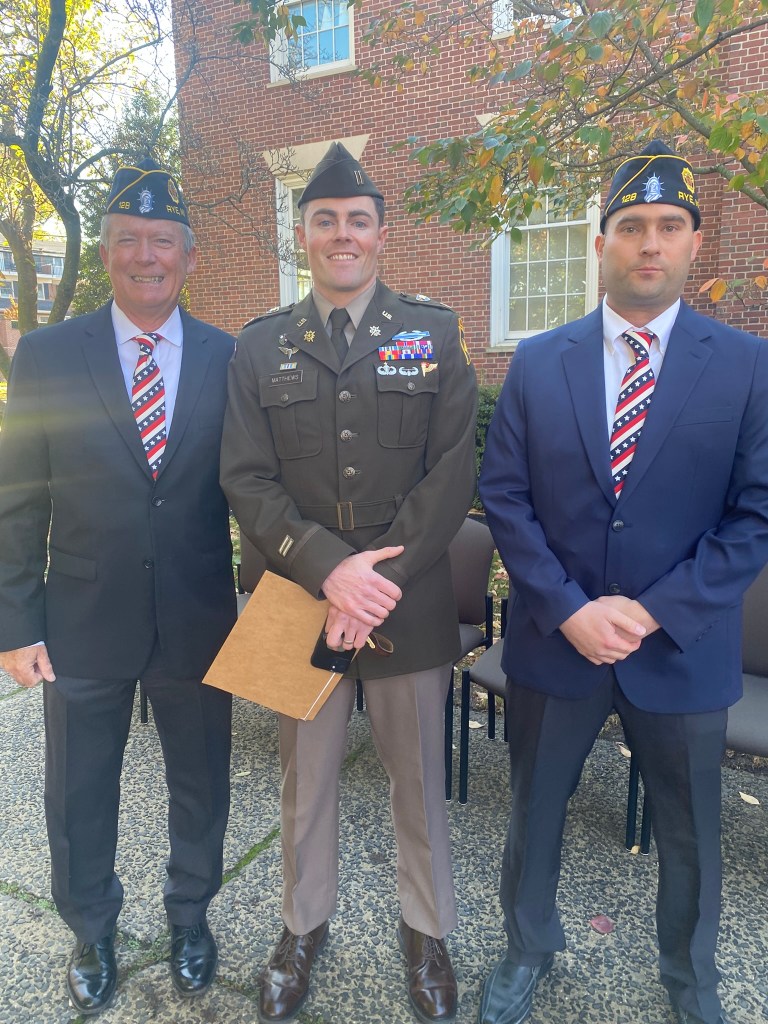 This year’s keynote speaker was Captain Leo Matthews whose name is inscribed on the new Afghanistan-Iraq plaque. He is a 2011 graduate of Rye High School and currently serves as an instructor of American Politics at West Point. A military intelligence officer by profession, Leo served with the 75th Ranger Regiment from 2018-2022 and completed three deployments to Afghanistan in support of Operation Freedom’s Sentinel.