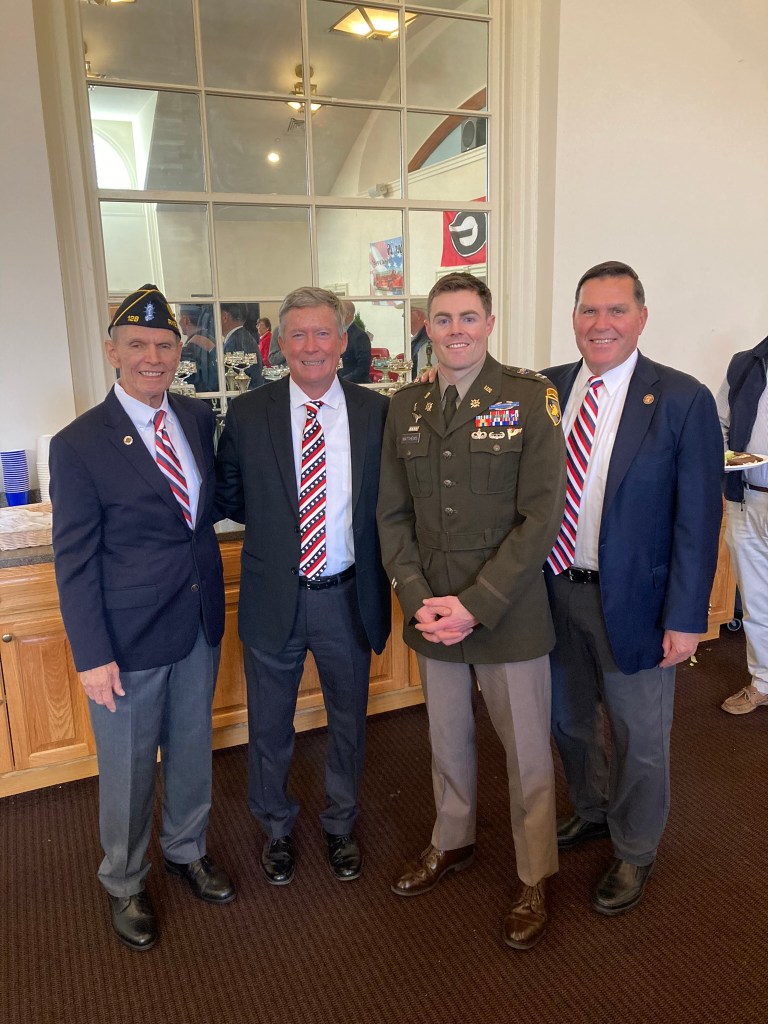 In his talk to honor veterans. Capt. Mathews described the heroic actions on his troops during close quarter contact in a firefight in Afghanistan. His troops were awarded silver stars for courage under fire.