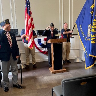 The City of Rye continued its tradition of honoring Rye veterans on Veterans Day, Saturday, November 11, 2023. Rye American Legion Post 128 conducted the ceremony at Rye City Hall at 10:30 am on a beautiful fall day. American Legion Post 128 Commander Fred de Barros led the ceremony. He highlighted the American Legion values … More Rye Honors Veterans on Veterans Day